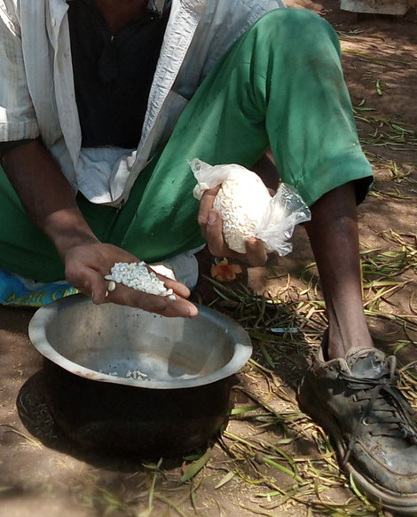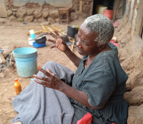 "Laughing together amuses the soul. Between all the misery and pain, it feels really good! At the picture on the right you see a tiny egg. When I asked who laid it, the Mama answered: "My rooster!" And to my surprise she showed me the potatoes shown in the picture on the left, and told me that they had grown on a tree next to her house. A hen can not lay eggs if there is no rooster nearby. I just had to laugh and thought: Why not? As a European I certainly do not know everything better. I love these people."
